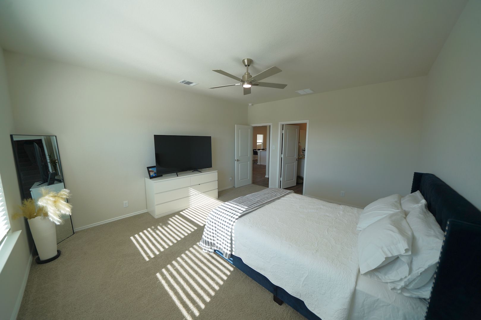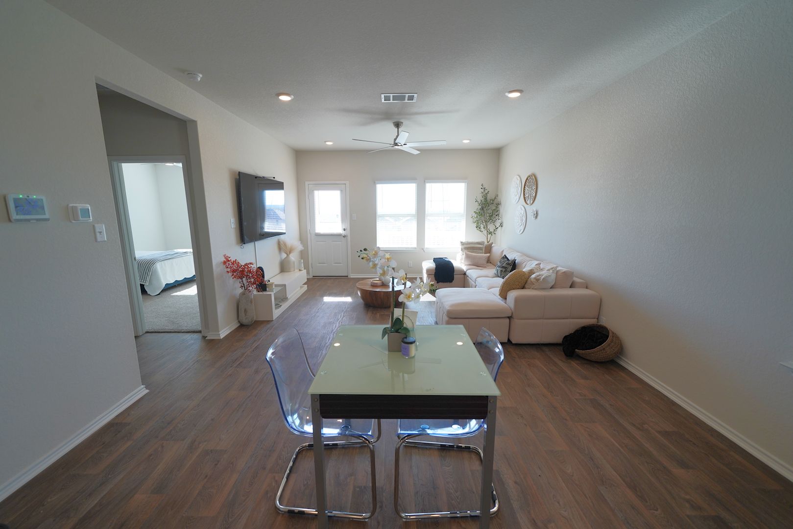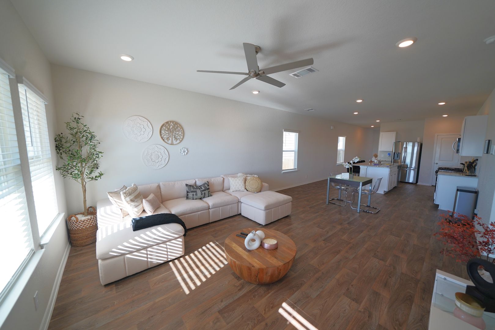 Welcome to this exquisite, recently constructed 4-bedroom, 2.5-bathroom residence now on the market in the coveted Applewood subdivision. Upon entering, you're greeted by an expansive foyer that seamlessly guides you into the inviting open kitchen, dining area, and living space, adorned with stylish vinyl plank flooring throughout the first-floor common areas. Natural light fills the spacious living area, accentuated by adjacent windows. The well-appointed eat-in kitchen boasts a sizable island with ample bar seating, complemented by granite countertops, upgraded shaker-style cabinets, and coordinating stainless steel appliances. The master bedroom, conveniently situated on the main level, includes a full en-suite bathroom with a single vanity featuring granite countertops, an extended shower, and a generously sized walk-in closet. Ascending upstairs, you'll discover additional roomy bedrooms and a versatile game room. The backyard oasis offers a covered patio and backs up to a serene greenbelt, providing an extra layer of privacy. This property comes complete with all appliances, including the refrigerator, washer, and dryer. The home also has solar panels which help reduce the monthly electric bill. Conveniently located with easy access to Loop 1604, I-10, Lackland AFB, and an array of dining and shopping options, this home is not only a joy to reside in but also a pleasure to showcase.