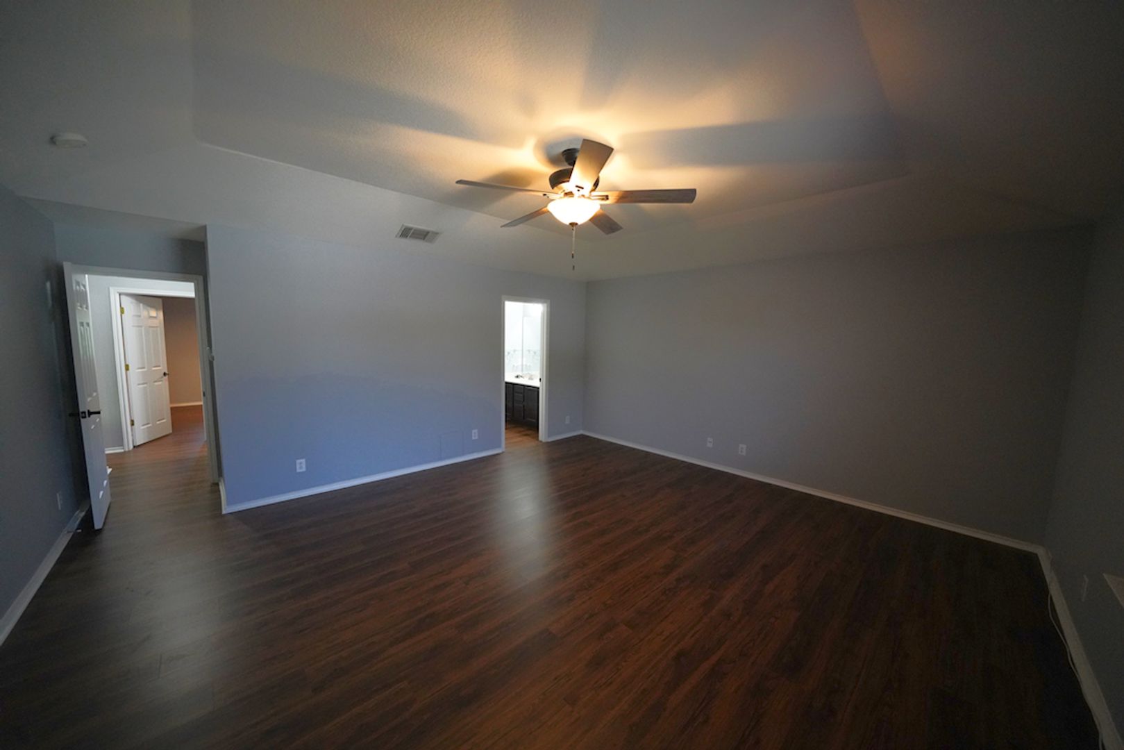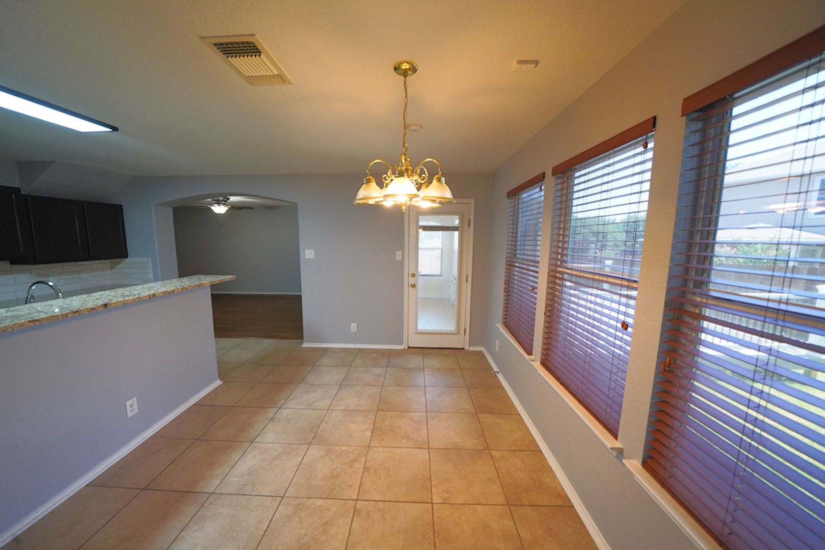 Beautifully maintained 3-bedroom, 2.5-bathroom home now available in the desirable Whisper Meadows subdivision. Step into the inviting family room, featuring laminate wood flooring and a cozy fireplace. The open-concept layout flows seamlessly into the upgraded kitchen and breakfast area. The kitchen offers granite countertops, a breakfast bar, tiled backsplash, and matching appliances, including a refrigerator. All bedrooms are located upstairs and feature durable vinyl plank flooring for ease of cleaning. The primary suite showcases high ceilings and includes a full en-suite bathroom with double vanities, a garden tub, a separate shower, and a large walk-in closet. The secondary bedrooms are spacious and include ceiling fans for added comfort. A bright Florida room leads to the outdoor deck, providing the perfect area for entertaining or relaxing. A recently installed water softener is included with the home. As a value-added convenience, our company will routinely handle both HVAC air-filter replacements and water-softener salt replenishment on a scheduled basis for the tenant, ensuring proper maintenance and optimal system performance throughout the tenancy. This property offers quick access to Interstate 35 and is just a short drive to Randolph AFB. It will be a pleasure to show.