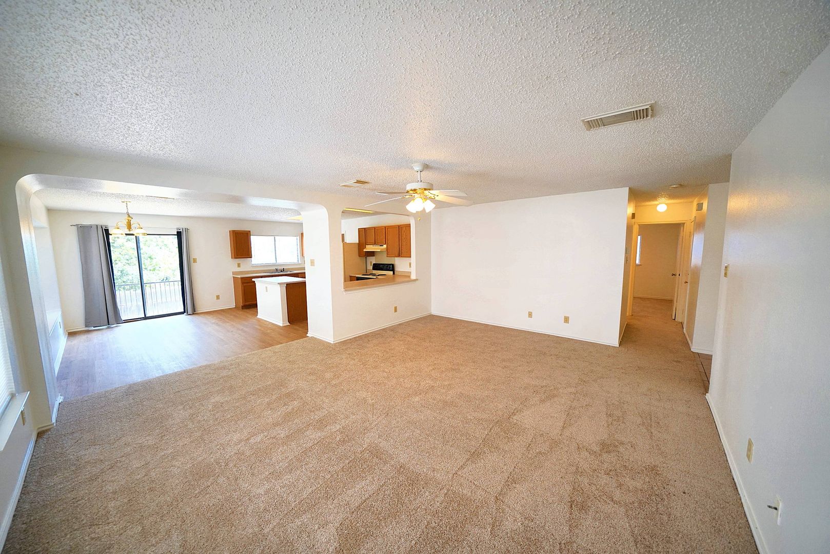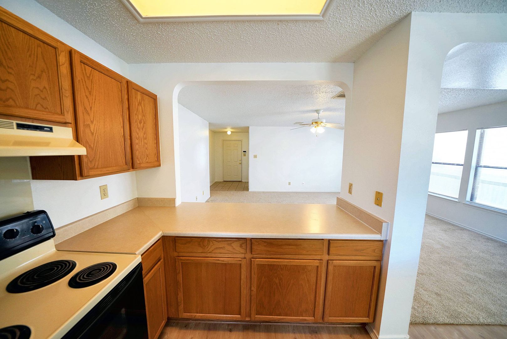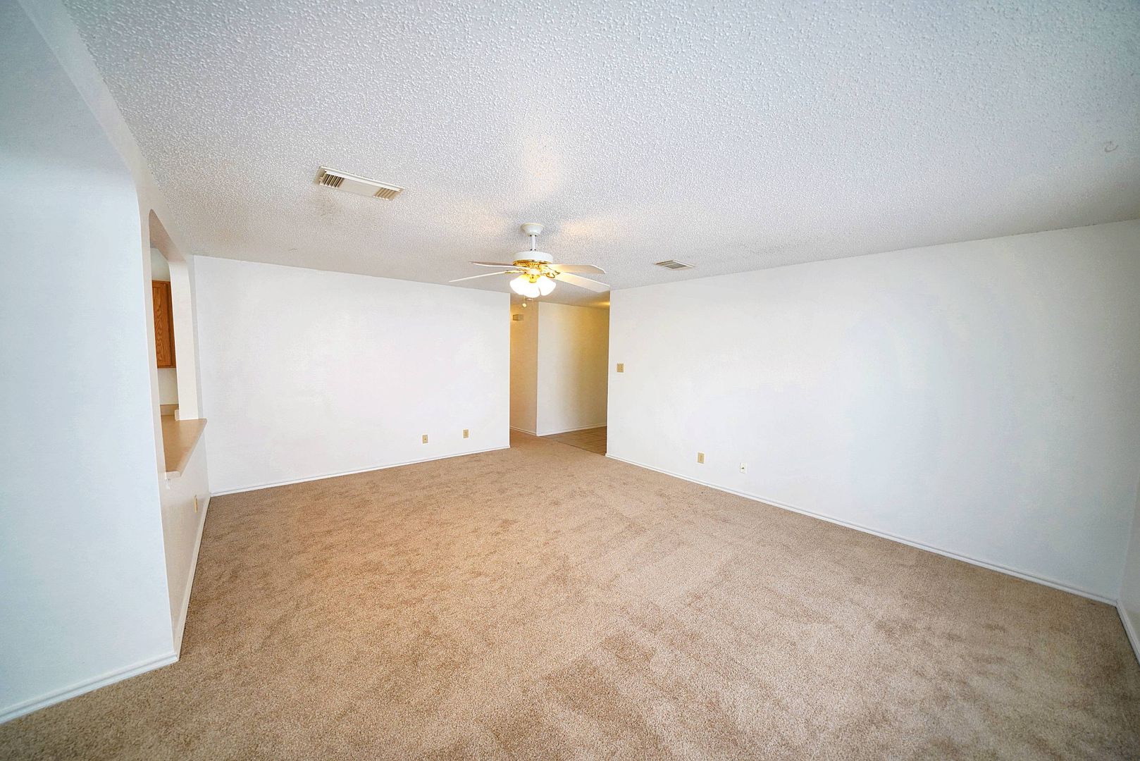 Discover this move-in ready 3-bedroom, 2-bathroom home in the desirable Northampton subdivision of Converse, TX. As you enter, you'll be welcomed by a spacious living room with newly installed carpet and vinyl plank flooring throughout. The eat-in kitchen is ideal for your morning routine and seamlessly connects to the living area, making it perfect for entertaining. The kitchen comes fully equipped with appliances, and a washer/dryer is also included, so you can settle in without any hassle. The master bedroom is generously sized and features a full en-suite bathroom with double vanities and a tub/shower combo. Both additional bedrooms are roomy and equipped with ceiling fans for extra comfort. Conveniently located near Loop 1604, Interstate 35, and just a short drive from Randolph AFB. This home is a must-see!