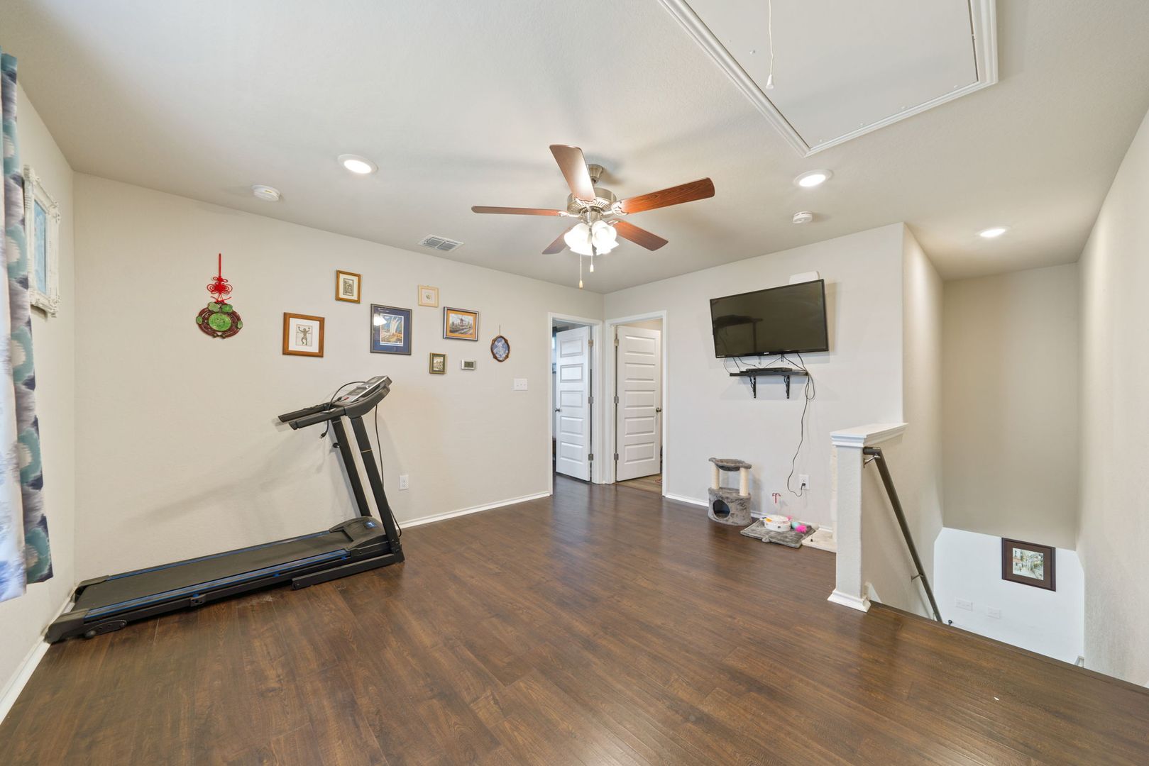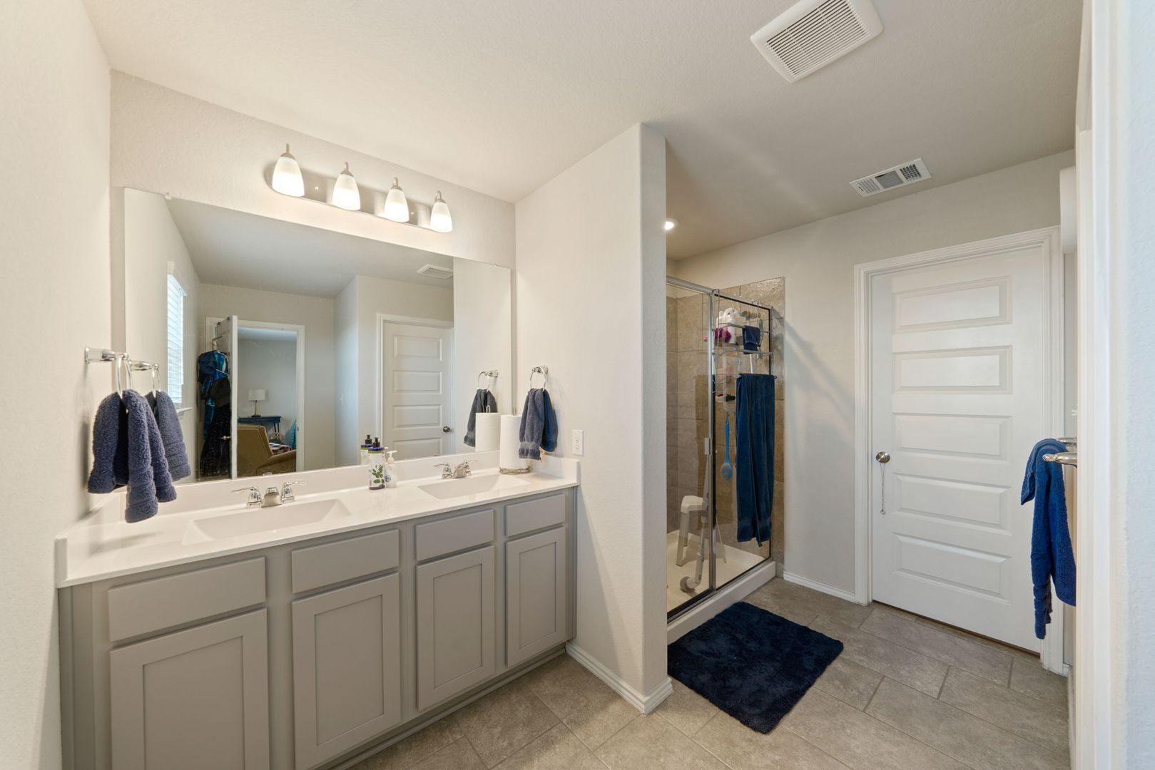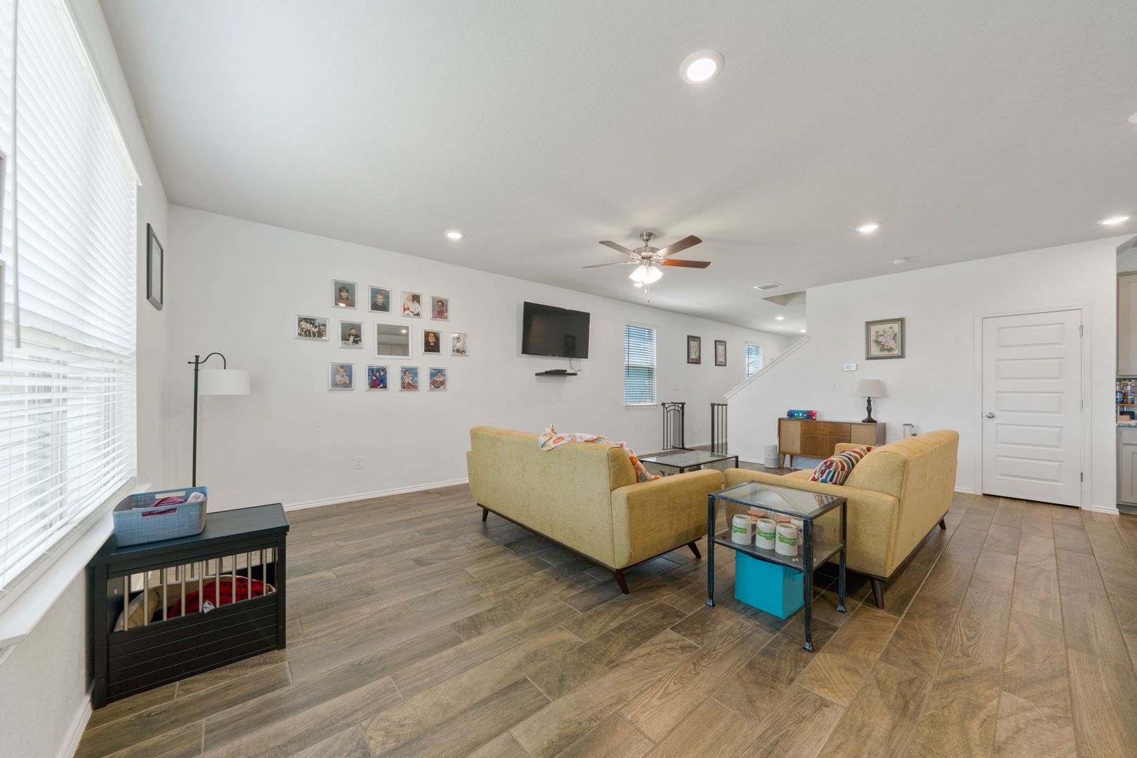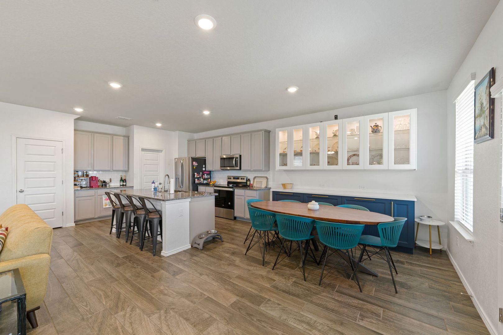 Gorgeous 4-bedroom, 3-bathroom home now available in the highly sought-after Millican Grove subdivision in Converse, TX. From the moment you step inside, you’ll be welcomed by an inviting entryway that opens to a spacious, open-concept living room, kitchen, and breakfast area—all highlighted by stylish ceramic plank tile flooring throughout the downstairs. The kitchen is a true chef’s dream, featuring granite countertops, a custom tiled backsplash, upgraded shaker-style cabinetry, and sleek stainless steel appliances. The breakfast area includes additional cabinetry and counter space, complete with built-in LED lighting—perfect for entertaining or everyday use. Upstairs, you’ll find a generously sized master suite with a spa-like en-suite bathroom that offers dual vanities, a large walk-in shower, and an expansive walk-in closet. Two additional bedrooms, a full secondary bathroom, and a spacious game room are also located upstairs. For added flexibility, a fourth bedroom and third full bathroom are conveniently located on the first floor. Step outside to enjoy the oversized backyard with a covered patio—ideal for weekend BBQs or relaxing evenings. Additional highlights include solar panels to help reduce electric bills and numerous upgrades throughout the home. With easy access to I-10, Loop 1604, The Forum, and Randolph AFB, this home combines comfort, style, and convenience. A true pleasure to show!