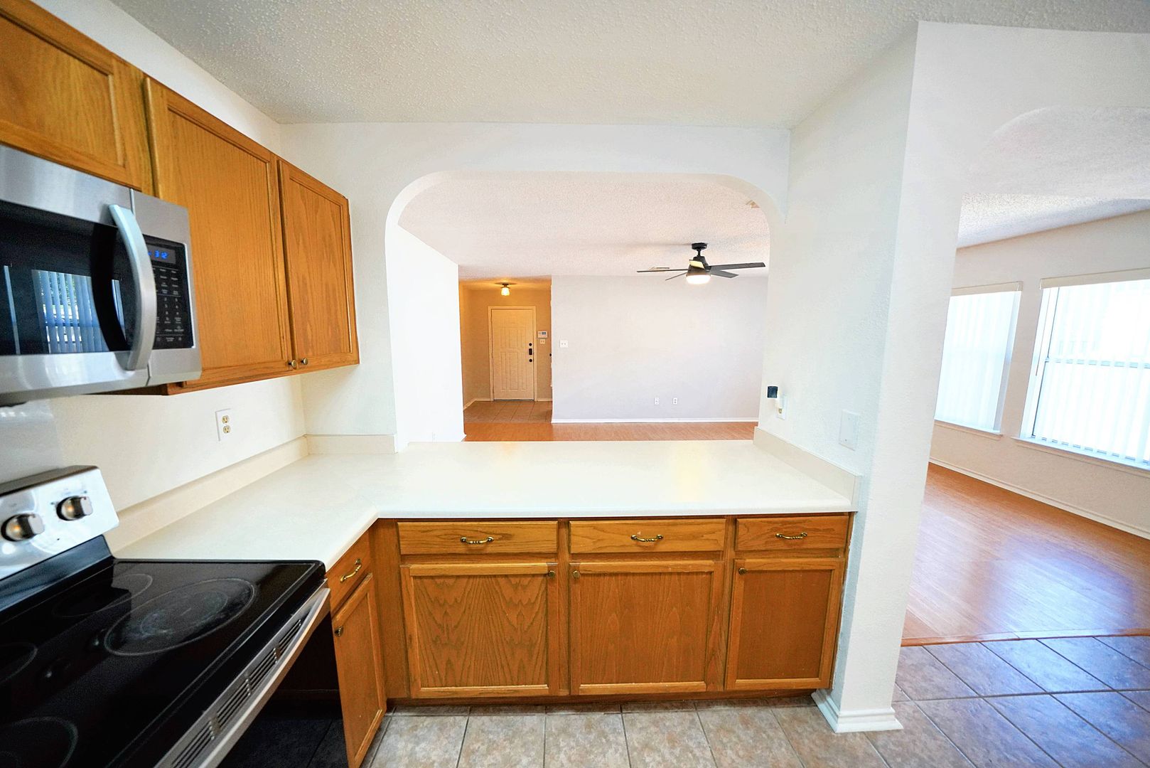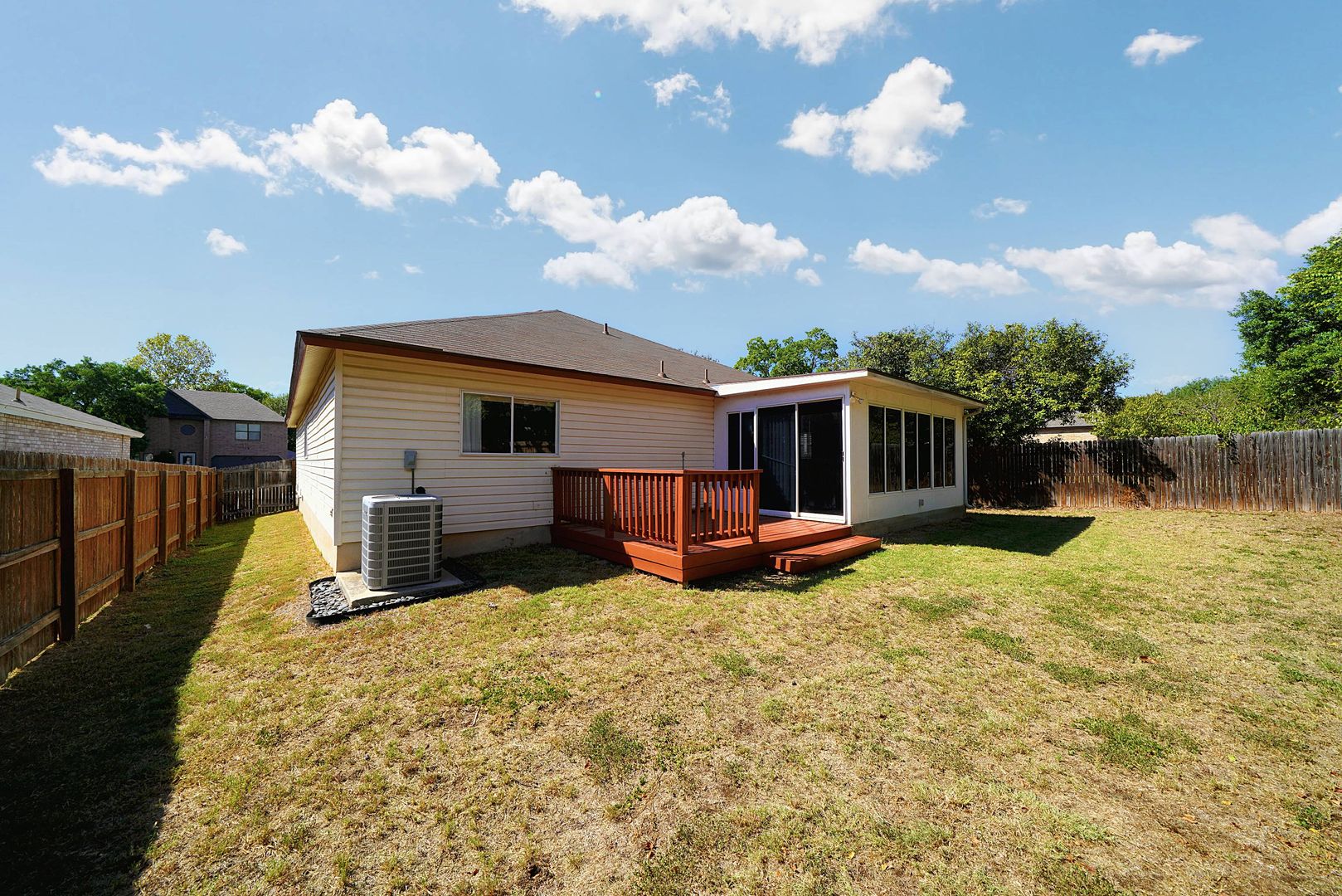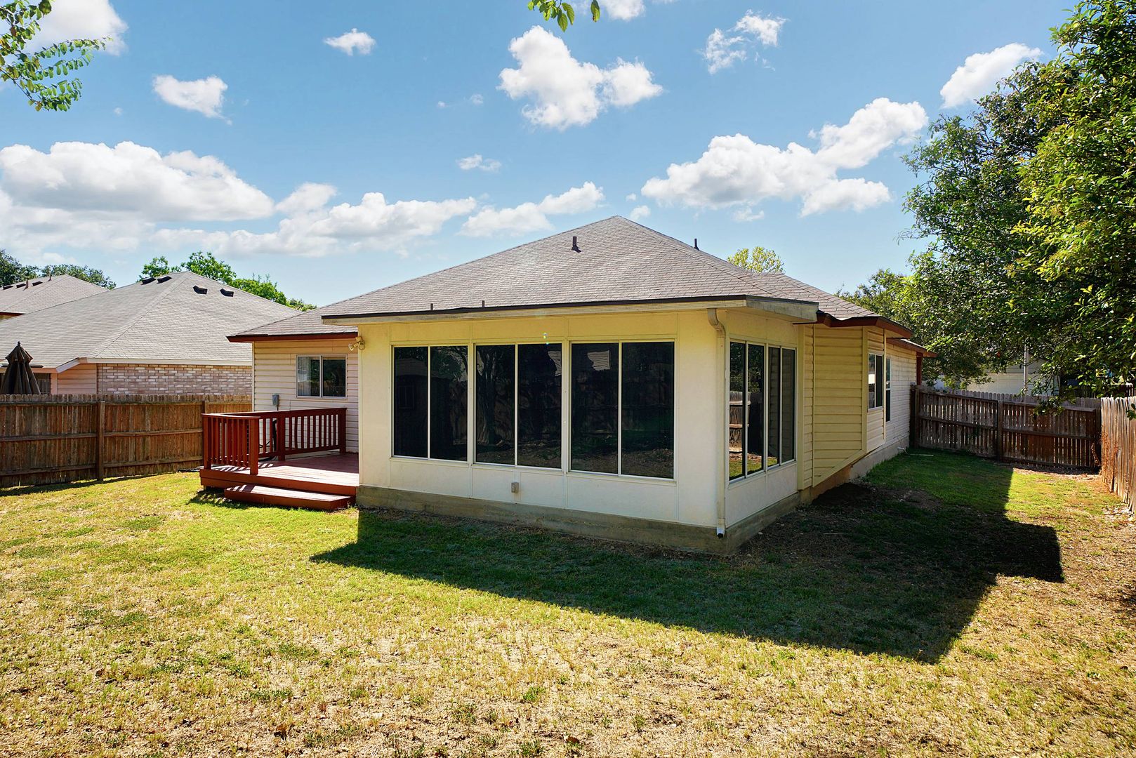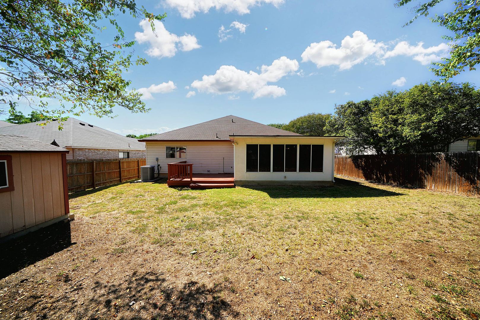 Welcome to this stunning single-story home, featuring 3 bedrooms and 2 bathrooms, nestled in the highly sought-after Ashley Place community in the heart of Schertz, Texas. Step inside through the grand entryway, which guides you past one of the secondary bedrooms and into a bright and airy family room highlighted by elegant laminate wood flooring and abundant natural light. Designed for effortless entertaining, the open-concept layout seamlessly connects the family room, kitchen, and breakfast area. The kitchen is equipped with a central island, ample cabinetry, and matching stainless steel appliances. A large utility/pantry room, complete with a washer and dryer, adds convenience to daily living. The spacious master suite boasts a walk-in closet and an en-suite bathroom featuring double vanities and an upgraded walk-in shower with floor-to-ceiling tile. Both secondary bedrooms are generously sized and include ceiling fans for added comfort. An inviting Florida room leads to the backyard, where you'll find an extended deck, mature trees, and a storage shed-perfect for outdoor enjoyment. Conveniently located with easy access to I-35, Loop 1604, and just a short drive to Randolph AFB, this property is a must-see. Schedule your showing today and experience all this home has to offer!