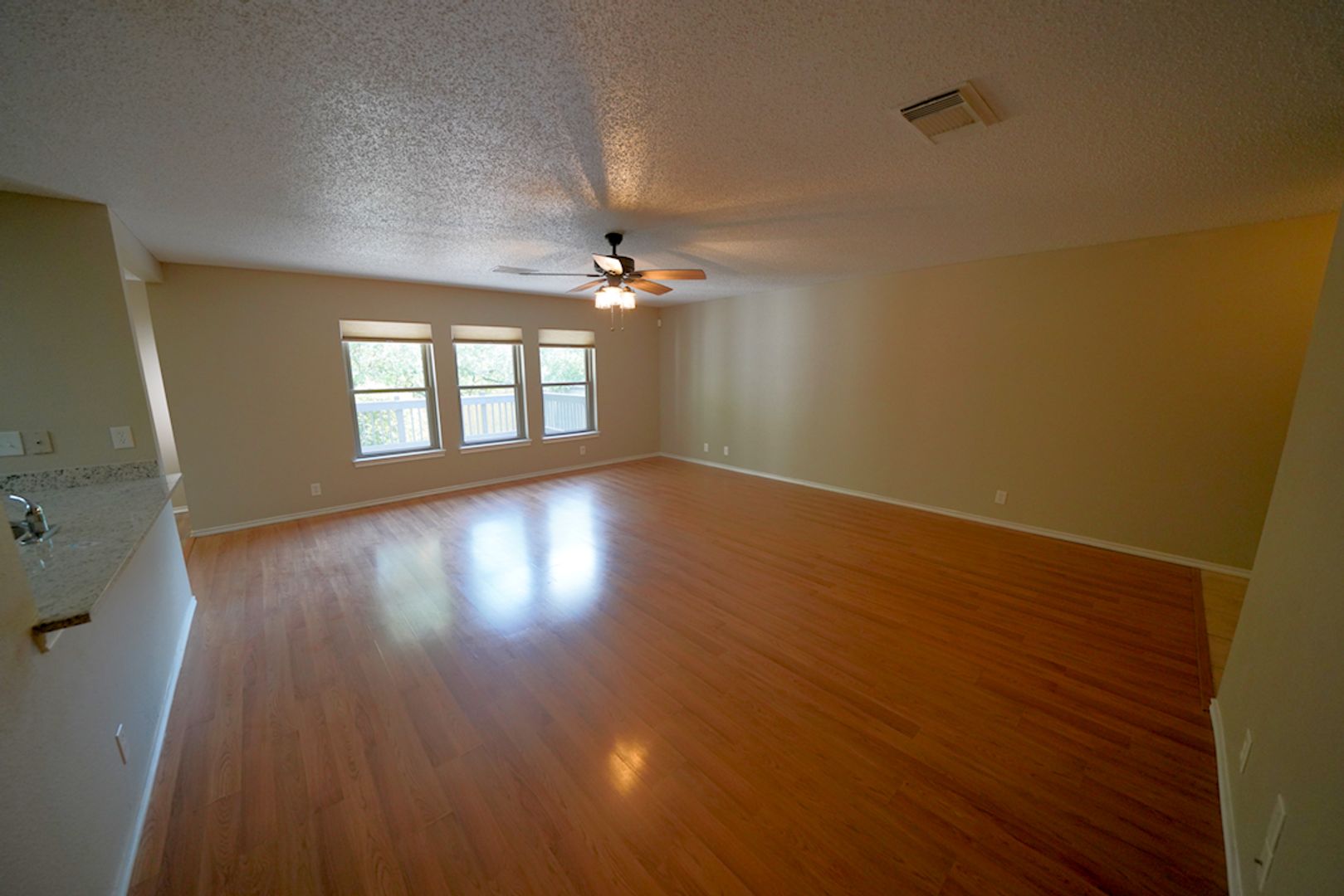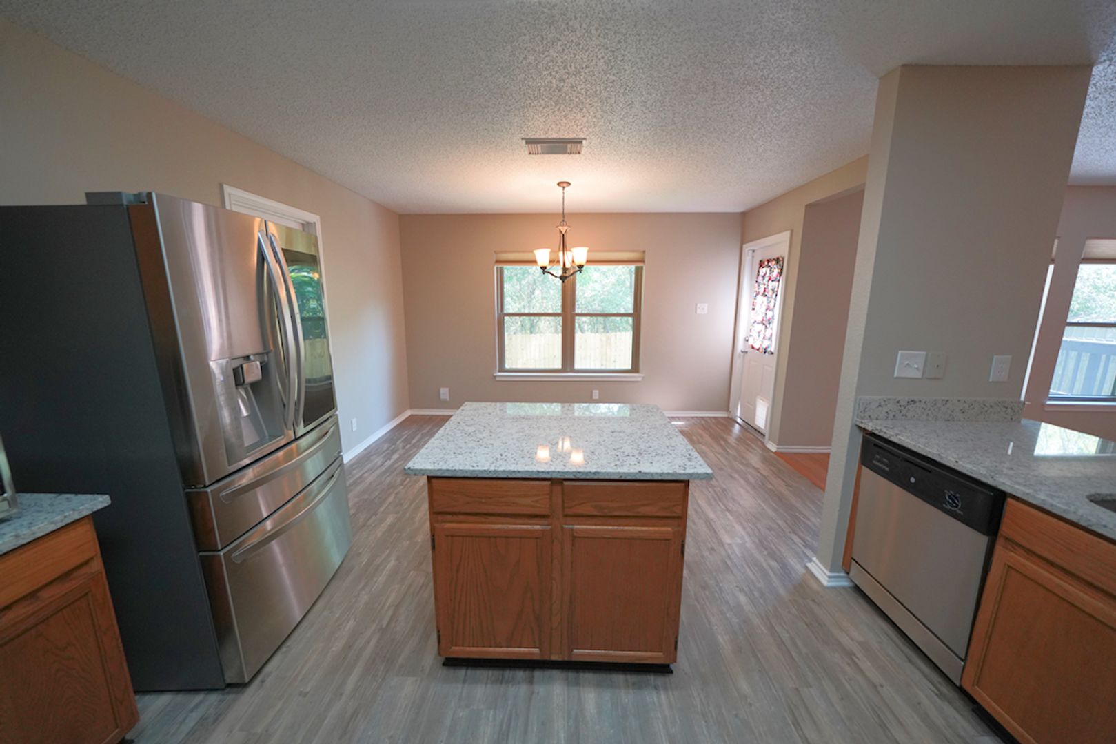 Beautifully maintained and thoughtfully updated one-story home now available in the quiet Kingswood Heights subdivision of San Antonio. This welcoming 3-bedroom, 2-bath residence offers over 1,600 square feet of comfortable living space with an open, airy floorplan ideal for both everyday living and entertaining. The home features wood laminate and luxury vinyl plank flooring throughout (no carpet) for easy maintenance and a modern feel. The kitchen is appointed with granite countertops and stainless steel appliances, including a refrigerator, and flows seamlessly into the living and dining areas. Both bathrooms have been remodeled and include granite countertops, new sinks, and updated fixtures. Additional upgrades include a water softener, updated light fixtures and ceiling fans, a stainless steel washer and dryer with pedestals, and an HVAC system equipped with a germicidal UV light to help reduce microbial growth. The home is also wired for security and includes a sprinkler system for both the front and back yards. Step outside to enjoy a large two-tier deck backing up to a greenbelt, offering privacy with no rear neighbors-ideal for entertaining, relaxing, or enjoying the outdoors. The property is clean, move-in ready, and thoughtfully designed for low-maintenance living. This property is homeowner-managed, and the owner is offering a one-time $400 credit toward the first month's rent for any accepted applicant. Conveniently located with quick access to Bandera Road, Loop 410, Loop 1604, and Culebra Road, this home offers an easy commute along with comfort and privacy. Schedule your showing today-this one will not last long.