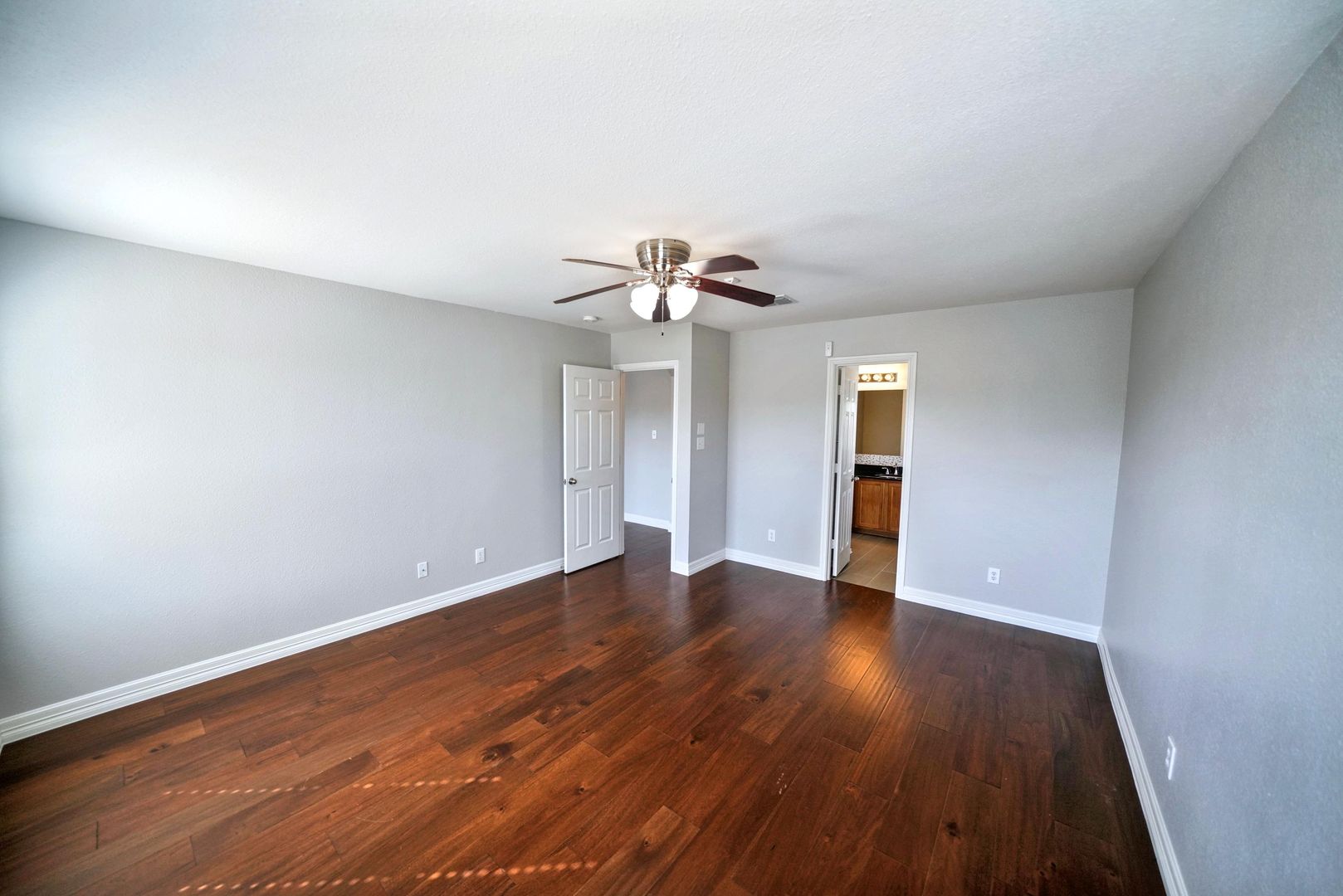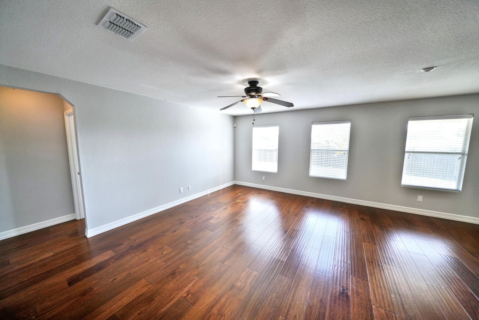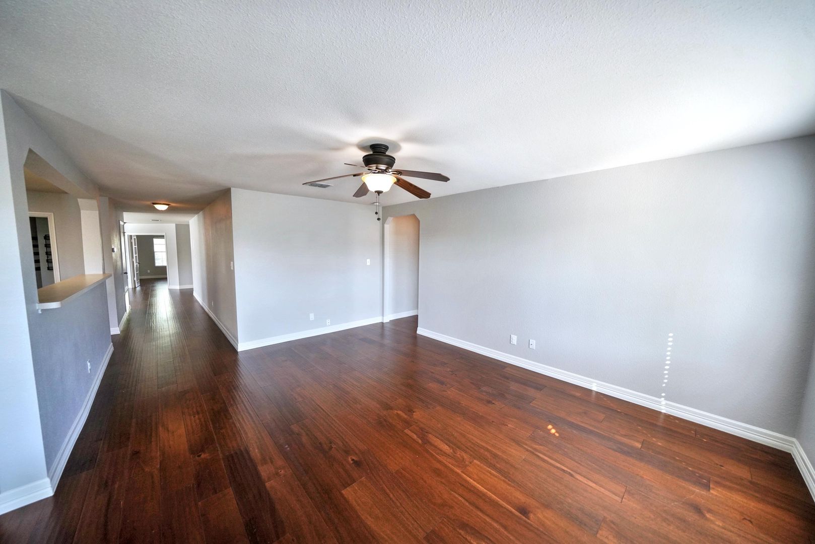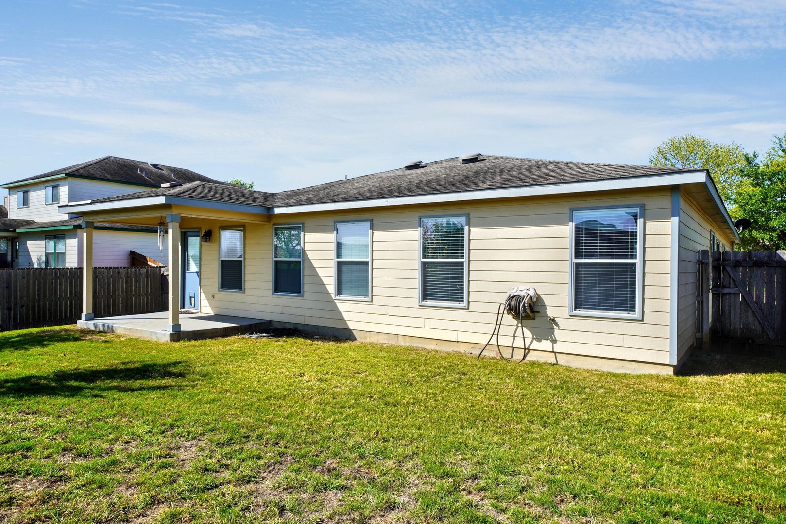 This stunning first-time rental home is now available in the highly sought-after Trails of Kensington Ranch subdivision in Schertz, TX. Boasting 3 bedrooms, 2 bathrooms, and an additional office and living space, this home is designed to meet all your needs. Upon entering, you'll be greeted by beautifully upgraded wood laminate flooring that flows seamlessly throughout the entire home. Beyond the secondary living area and office, you'll enter the spacious main living room, which is open to both the kitchen and breakfast areas-perfect for entertaining. The kitchen is a chef's dream, featuring abundant cabinetry with custom pull handles and a full suite of appliances, including a refrigerator. Adjacent to the kitchen, you'll find a large pantry and utility room for added convenience. The master bedroom, separated from the secondary bedrooms, offers a peaceful retreat with a luxurious en-suite bathroom. The master bath includes double vanities, a custom walk-in shower, a large garden tub, and an oversized walk-in closet. The two generously sized secondary bedrooms also come with ceiling fans, ensuring comfort throughout. Step outside into the backyard, where you'll enjoy a covered patio with scenic views on both sides-ideal for sipping your morning coffee or relaxing in the evening. This home is a true gem, and it will be a pleasure to show.