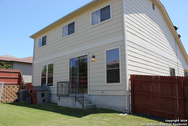 Gorgeous Wood Laminate Flooring to include the stairway. The kitchen has Stained Cabinets, Black Appliances, Built-In Microwave, Recess Lighting, & Breakfast Bar Great Master has a full bath with a Separate Glass Shower/Tub, & Double Vanity, and a Sophisticated Paint Palette. Upstairs has a big Game Room, Bedroom, & Nice Full Bath, and a sliding Glass Door that Opens to a spacious backyard. Lovingly maintained property that has easy access to IH-35, Randolph AFB, and plenty of shopping at The Forum. No pets allowed.