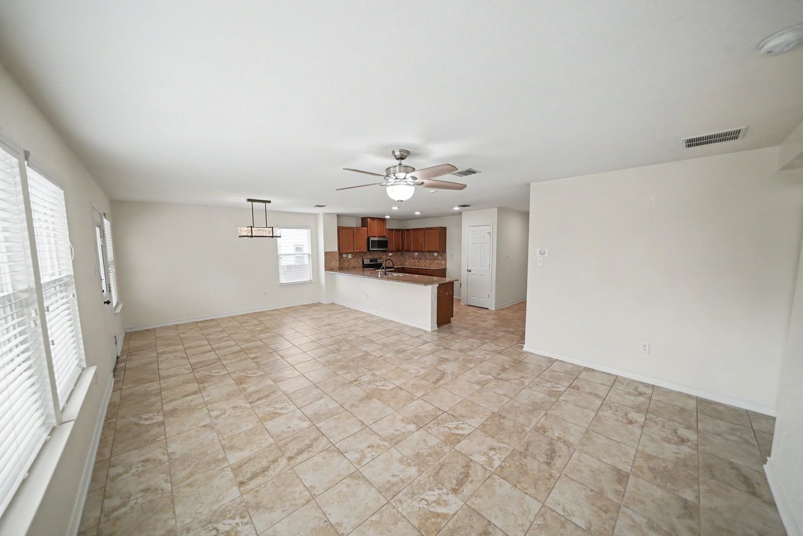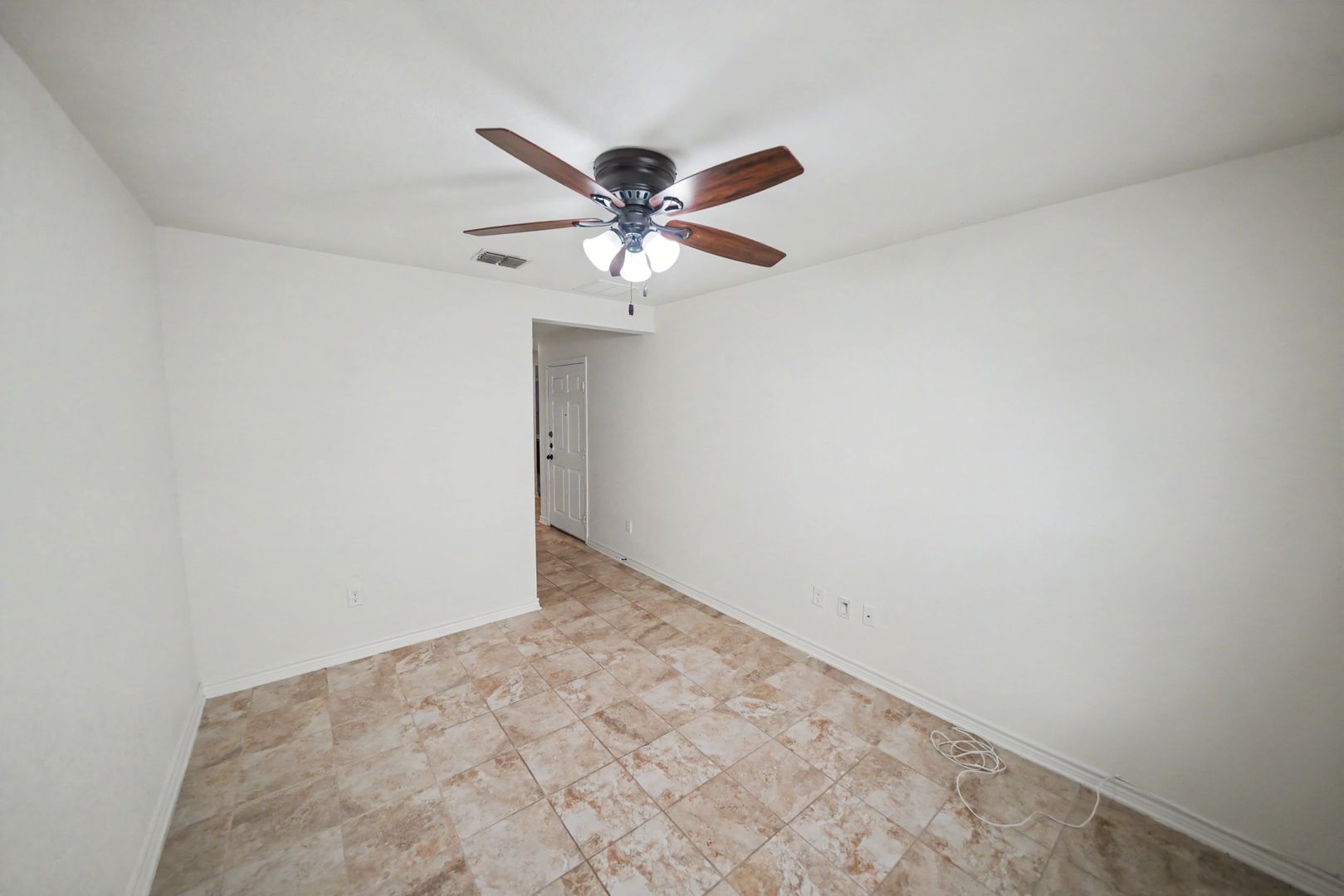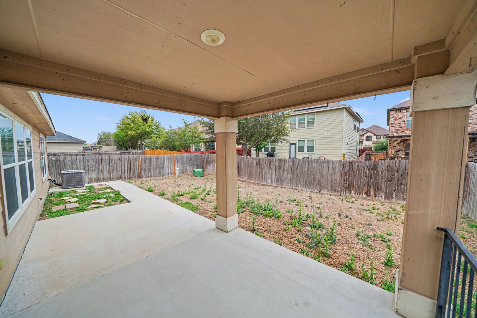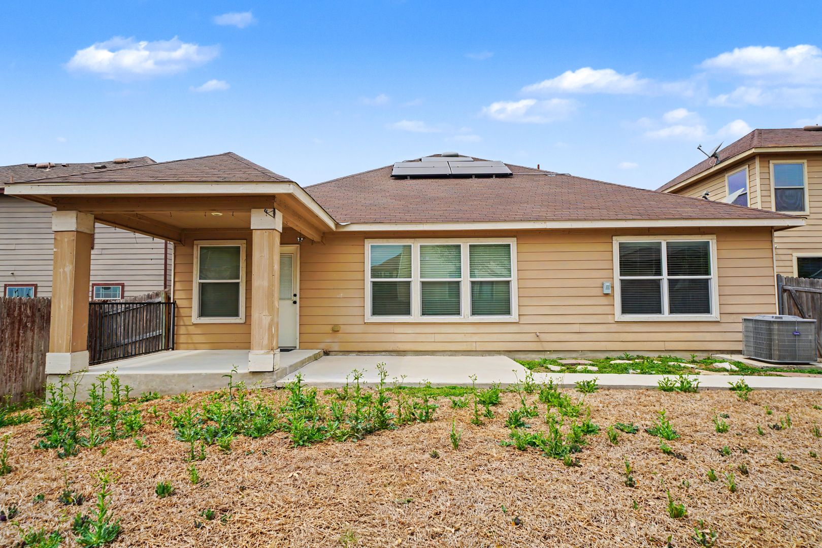 Gorgeous 3-bedroom, 2-bathroom home with a versatile flex room located in the desirable Copper Springs subdivision of Converse, TX. As you step inside, you're welcomed by an oversized entryway featuring beautiful ceramic tile flooring that extends throughout the home, offering both style and low-maintenance living. Just beyond the secondary bedrooms and flex space, the home opens up into a bright and airy living, dining, and kitchen area filled with natural light from surrounding windows-perfect for both everyday living and entertaining. The spacious kitchen is a standout, featuring granite countertops, a tiled backsplash, ample cabinetry, and matching stainless steel appliances. The primary suite offers plenty of space and includes a private en-suite bathroom with dual vanities, a large garden tub/shower combination, and a walk-in closet. The secondary bedrooms and flex room are all equipped with ceiling fans for added comfort and functionality. Step outside to enjoy the covered patio along with an extended patio area-ideal for weekend BBQs and outdoor gatherings. Solar panels are also installed to help reduce your monthly electric costs. Conveniently located with easy access to Loop 1604 and Interstate 35, and situated directly across from Randolph AFB, this home offers both comfort and accessibility. This is a home that truly shows well and won't last long!