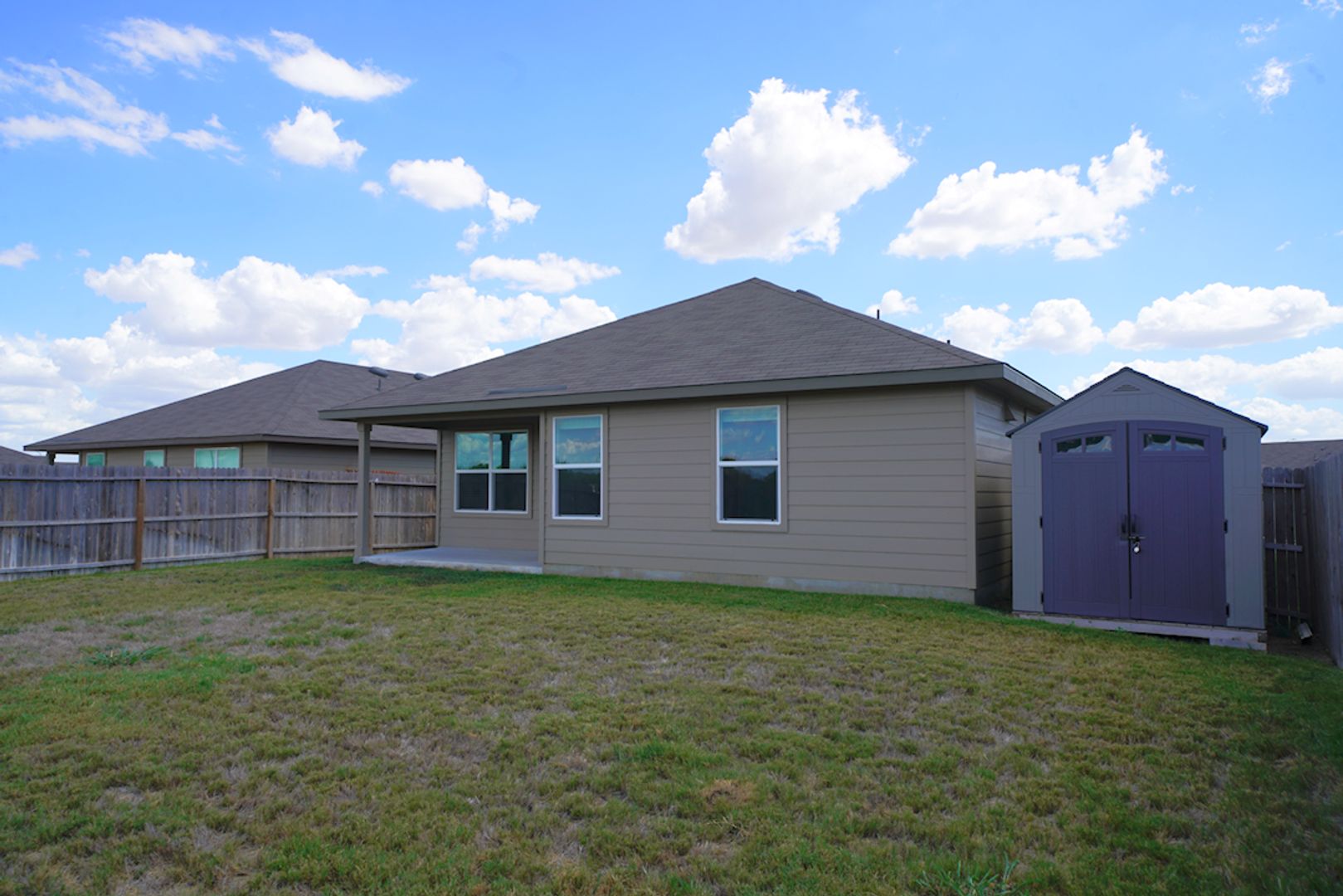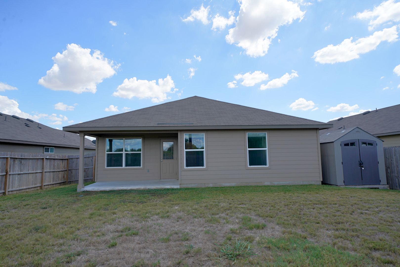 Beautifully maintained home now available in the desirable Red River Ranch subdivision in Cibolo, TX. This inviting property features an open-concept layout with soaring ceilings and upgraded vinyl plank flooring throughout the main living areas, creating a bright and modern feel from the moment you walk in. The spacious kitchen is designed for both functionality and style, highlighted by a large center island, granite countertops, tiled backsplash, and matching stainless steel appliances-perfect for everyday living and entertaining. The privately situated primary suite offers a true retreat, complete with a full en-suite bathroom featuring dual vanities, a relaxing garden tub, separate shower, and a generously sized walk-in closet. Secondary bedrooms are well-proportioned and include comfortable carpeting. Step outside to enjoy a covered patio overlooking a large backyard with plenty of room to relax or entertain, along with an additional storage shed for added convenience. Ideally located just minutes from Randolph AFB with quick access to IH-35, I-10, and Loop 1604, this home offers both comfort and convenience. Schedule your showing today-this one won't last long. Small pets considered.