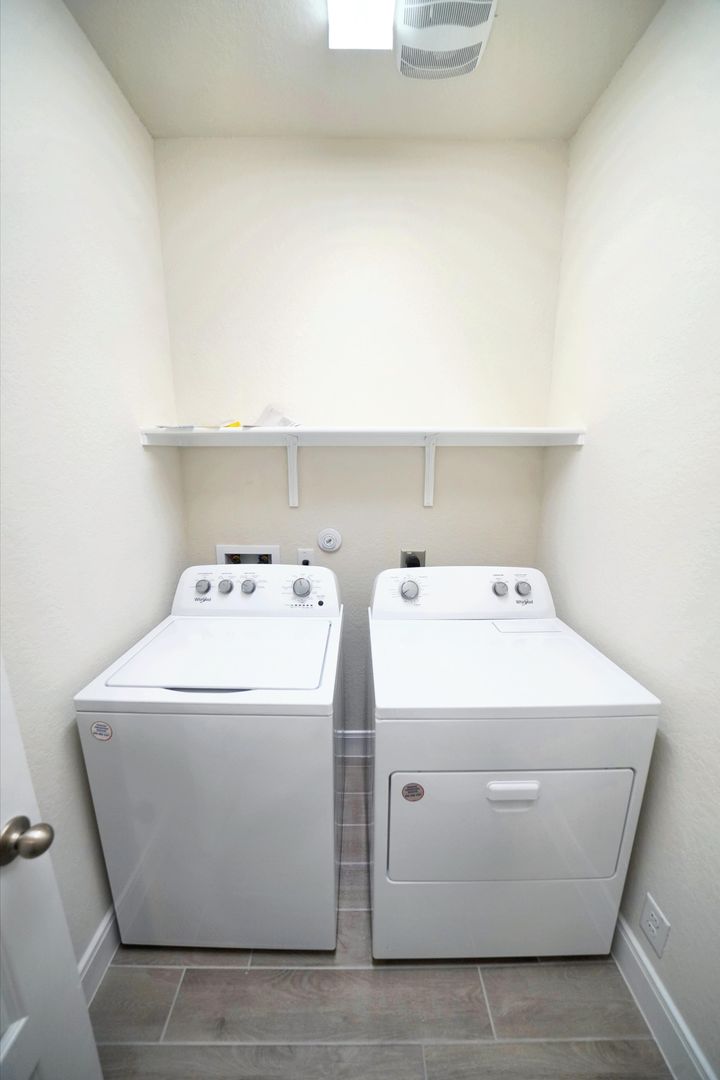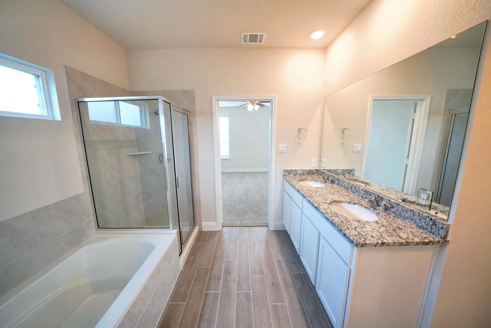 Discover unparalleled comfort and style in this newly constructed Stonewall model home, nestled in the prestigious Steel Creek community of Cibolo, TX. Spanning 2,352 square feet, this property is meticulously designed to cater to the most discerning tastes, featuring four spacious bedrooms, 2.5 luxurious bathrooms, and an expansive game room. As you step through the grand entryway, you're greeted by soaring ceilings and elegant ceramic tile planks that stretch across the common areas, setting the stage for a home that's as welcoming as it is refined. The seamless flow from the formal dining room to the kitchen and living areas makes entertaining effortless. The chef's kitchen is a culinary dream, boasting a tiled backsplash, pristine granite countertops, sophisticated shaker-style cabinets, and high-end stainless steel appliances. An oversized eat-in island offers ample preparation space. The master suite, conveniently located on the first floor, is a private retreat complete with a lavish en-suite bathroom featuring dual vanities, a large garden tub, a separate shower, and a generous walk-in closet. Upstairs, the additional bedrooms are complemented by a spacious game room and another full bathroom, creating the perfect blend of privacy and leisure. Noteworthy enhancements include 9-foot ceilings, 2-inch faux wood blinds, pre-plumbing for a water softener, comprehensive yard irrigation, and a Radiant Barrier Roof decking. The garage accommodates over two cars, tailored to the specific floor plan. This home is not just a residence but a smart home too, equipped with the innovative Home is Connected system, allowing you to manage lighting, temperature, and security with ease from your smartphone. The backyard, free from rear neighbors due to an adjacent easement, includes a large covered patio ideal for relaxing weekends or lively BBQs. Located conveniently near major highways and minutes from Randolph AFB, with access to the award-winning SCUCISD, this home promises a lifestyle of convenience and luxury. It’s a pleasure to show and a privilege to own.